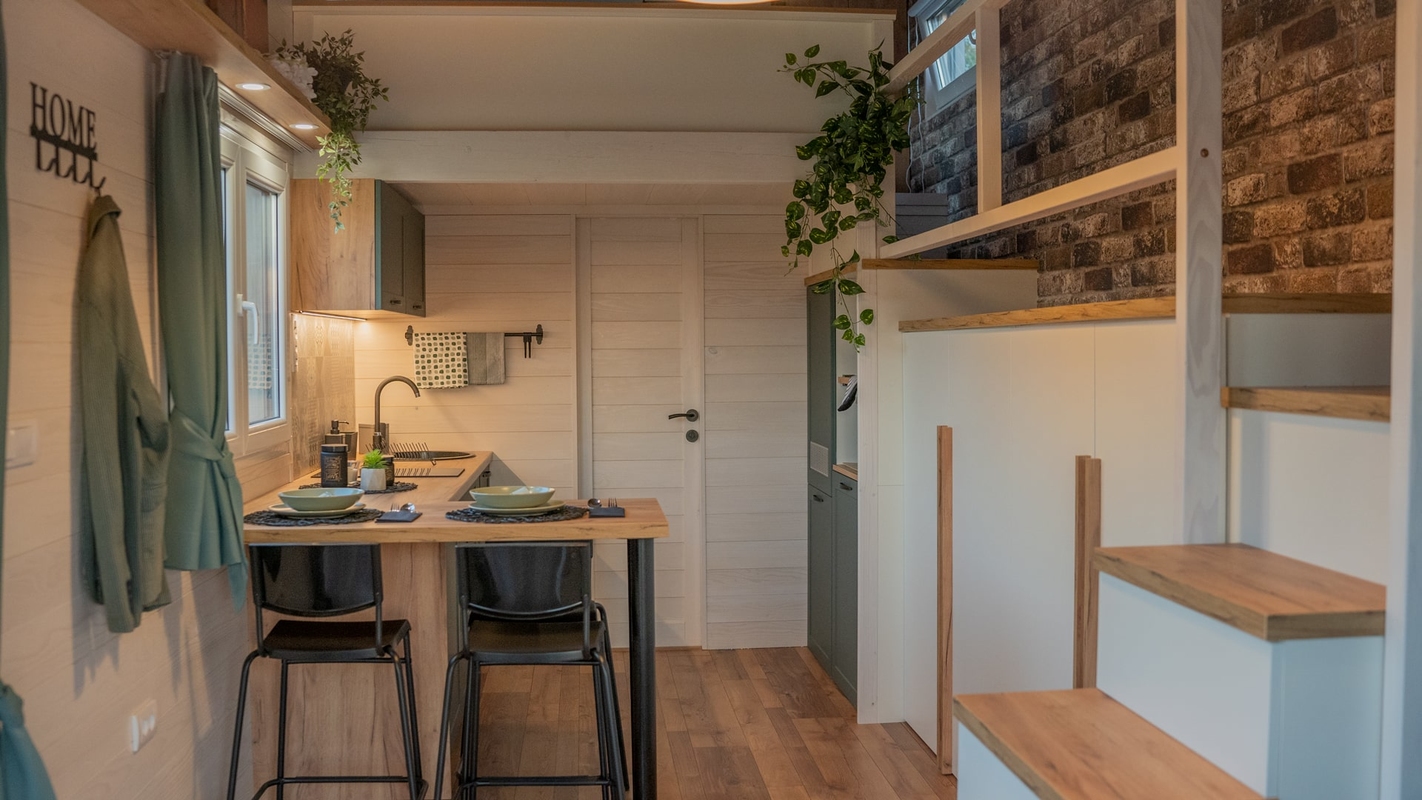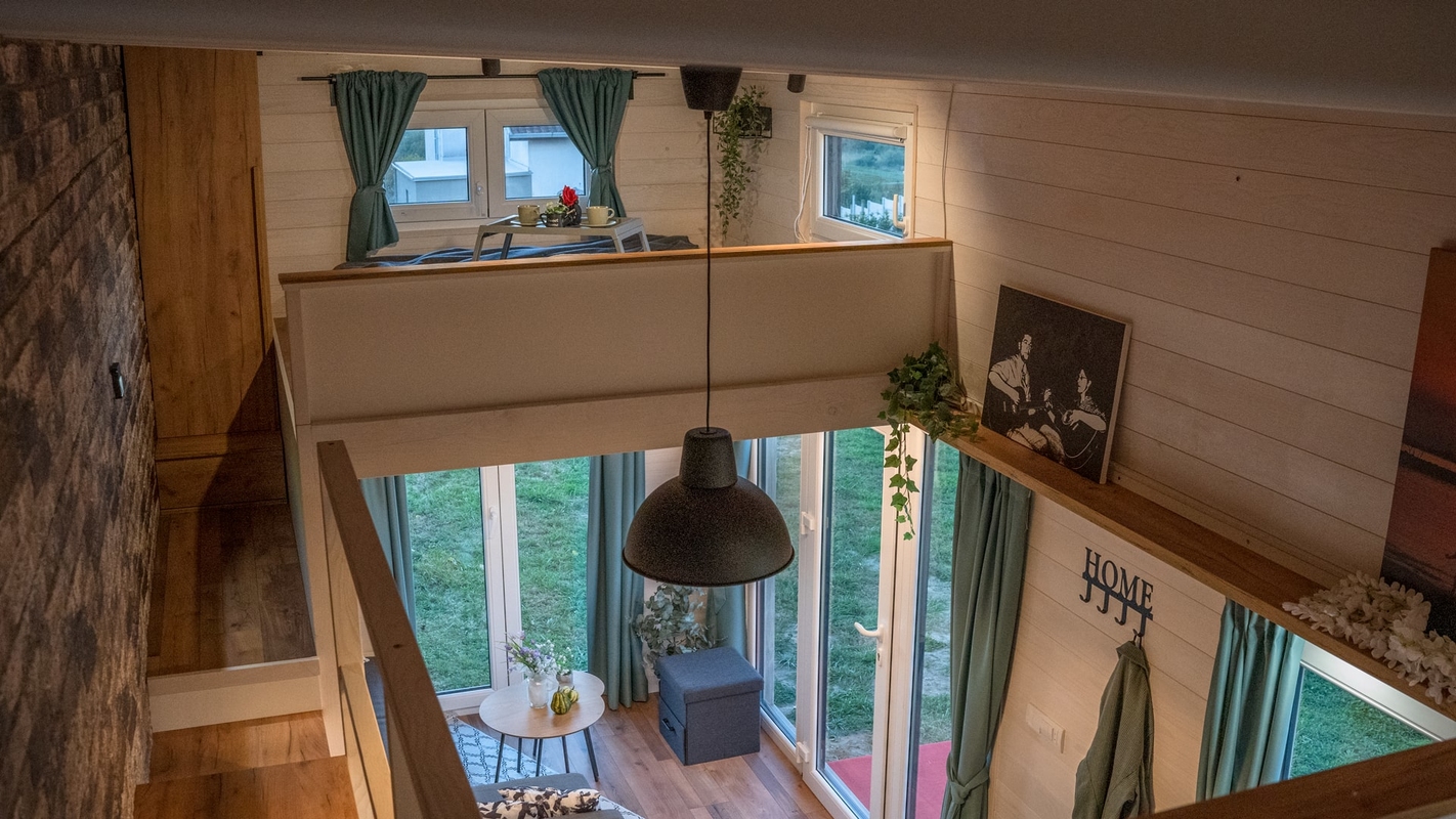 Můžeme zajistit i dovoz nového vyrobeného Tinyhouse domu 36m2 s dvěma lofty, vis fotky za cenu od 60tis.€ (1,5mil.Kč).