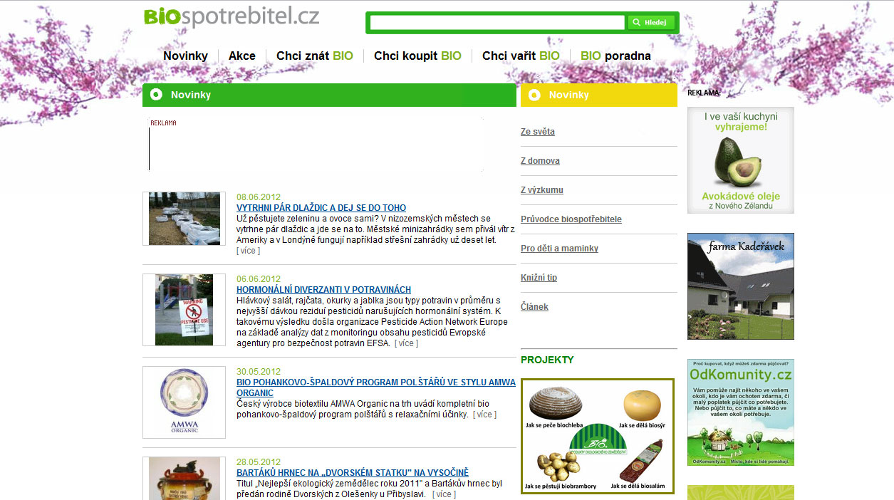 | Informačně-poradenské centrum o biopotravinách ekologickém zemědělství a ekologicky šetrném životním stylu. | Server www.biospotrebitel.cz pro všechny uvědomělé spotřebitele se zájmem o biopotraviny a ekologický životní styl. |