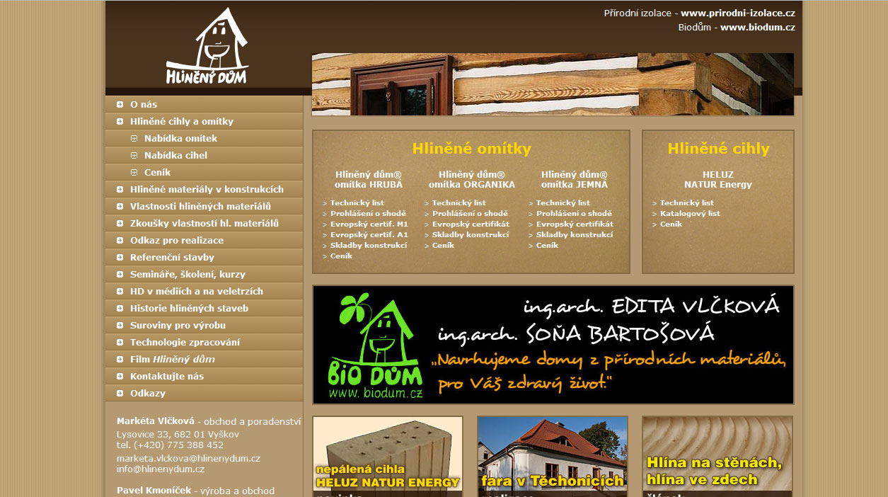 Vzhledem ke stále se zvyšujícímu zájmu o využití hlíny v novostavbách jsme v roce 2005 a 2006 vyvinuli hliněnou omítku složenou z čisté jílové hlíny a písků. Tento materiál je svou snadnou zpracovatelností určen širšímu okruhu stavebníků. Pro další vývoj těchto materiálů je důležitá probíhající spolupráce se Sdružením hliněného stavitelství a předávání zkušeností s partnery z Rakouska a Německa. Našim zákazníkům a zájemcům o hliněné stavitelství se snažíme zajistit dostatek informací o možnostech využití hlíny pro stavbu. Nato nava- zuje možnost projekční práce, požadavek dodávky materiálu i realizace stavby z hlíny a dalších přírodních materiálů.